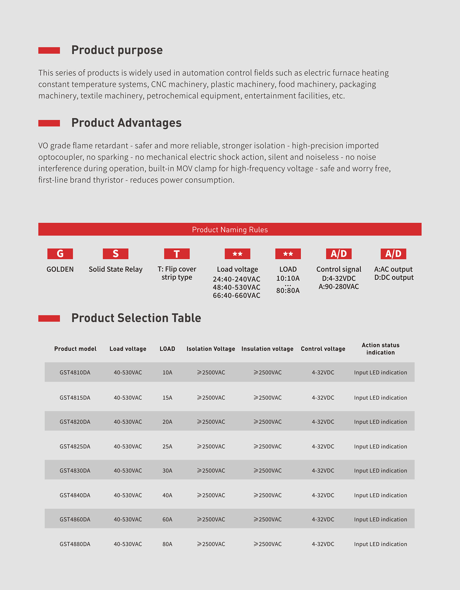 美國GOLDEN高登電氣 GST-53XXDA 單相翻蓋長條式 SSR